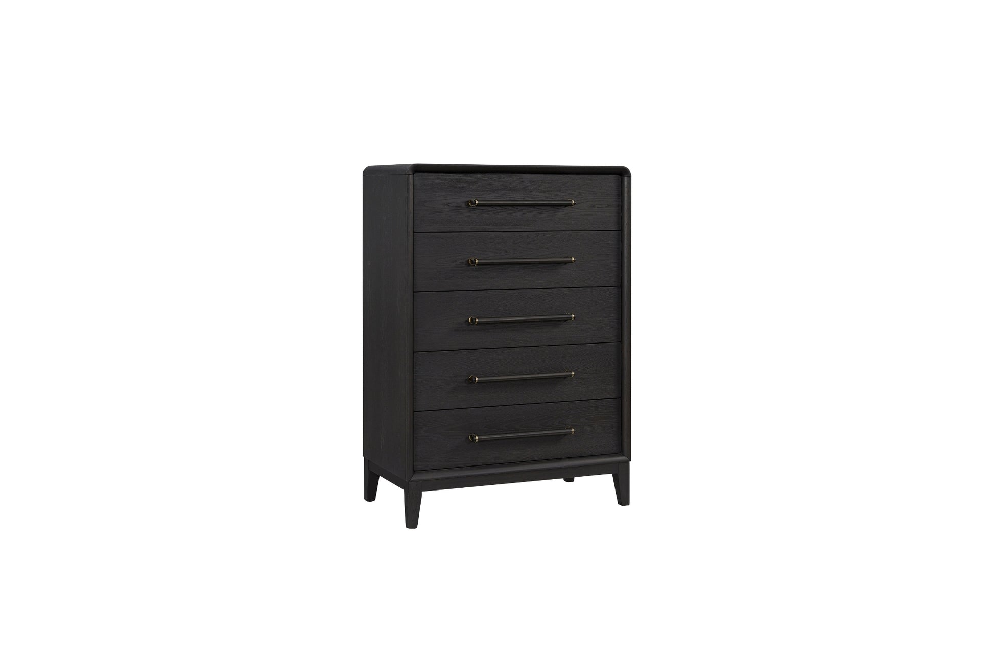 The Elure Peppercorn Youth Chest offers a bold yet refined storage solution with its deep Peppercorn finish and sleek, modern design. It has five spacious drawers and ample room for clothing, accessories, and essentials, making it perfect for growing kids or guest spaces. Elongated metal pulls add a contemporary touch, while the rounded edges soften the overall silhouette. Built for durability and style, this chest pairs seamlessly with other pieces from the Elure Youth collection.