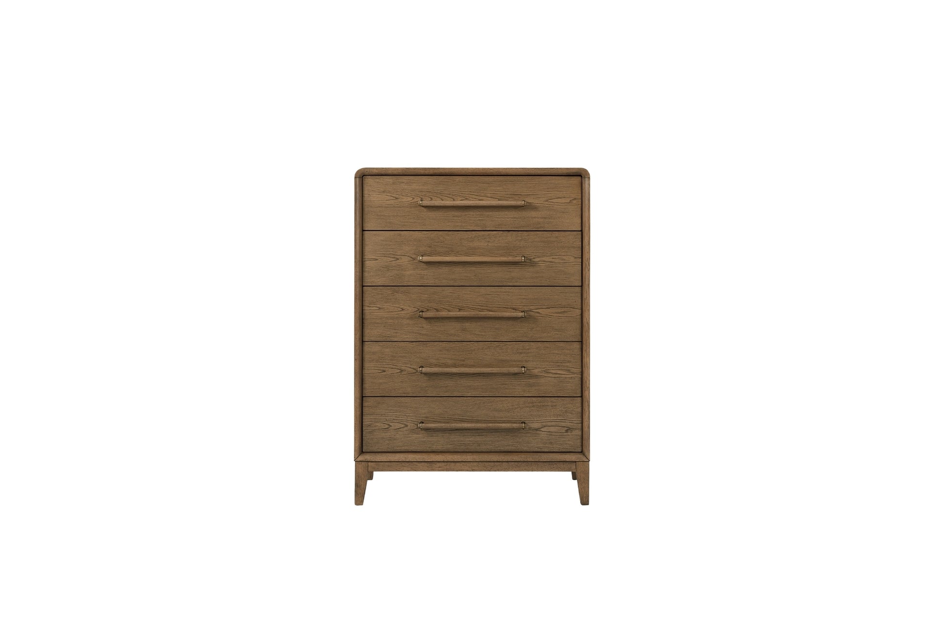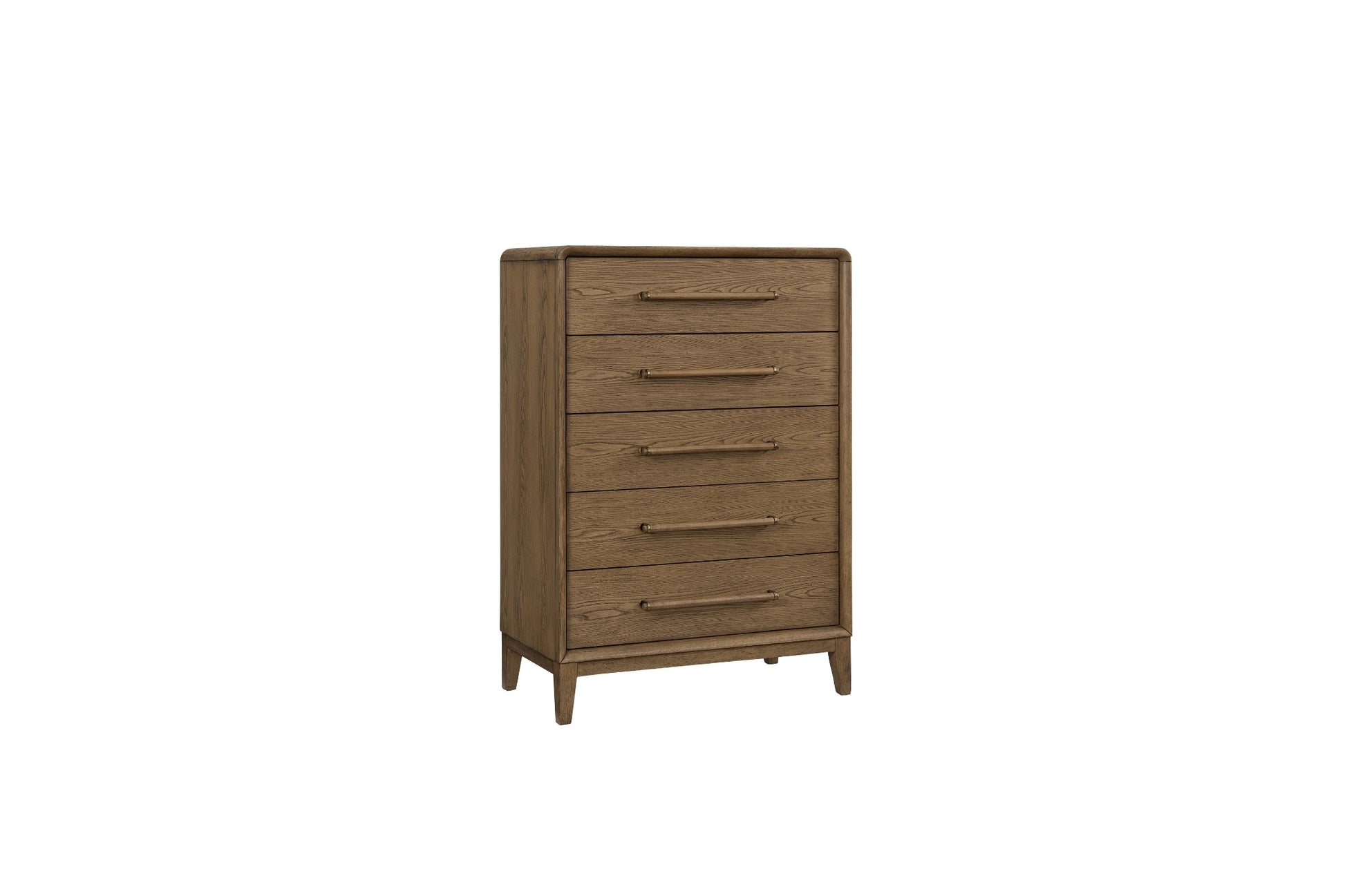 The Elure Latte Small Chest combines practical storage with a soft, modern aesthetic. Finished in a warm Latte tone, it features five spacious drawers accented by sleek bar pulls for a contemporary touch. Rounded corners and clean lines create a gentle, approachable silhouette that fits seamlessly into youth or guest bedrooms. With durable construction and ample storage, this chest is both stylish and functional—perfect for growing needs.